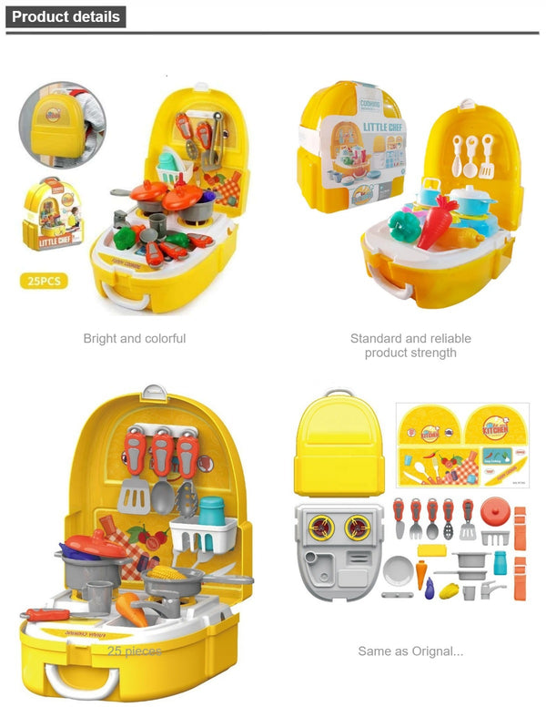 Kitchen Set for Kids Girls Boys - 25 Piece LittleChef Backpack Series Kitchen Cooking Toy Set with Accesssories Pretend Play Toys for Childrens