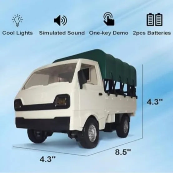 This miniature Ravi pickup delivers big fun with working LED headlights, rechargeable power, and realistic cargo-bed play – all controlled via 2.4GHz precision remote!