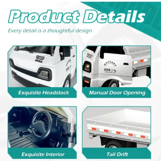 Lights, Action, Haul!This miniature Ravi pickup delivers big fun with working LED headlights, rechargeable power, and realistic cargo-bed play – all controlled via 2.4GHz precision remote! Hot Features: ✔ Full Function Control: Forward/Reverse • Left/Right • Turbo Speed✔ DIY Customization: Apply included stickers for personal flair✔ Interactive Details: Manually...