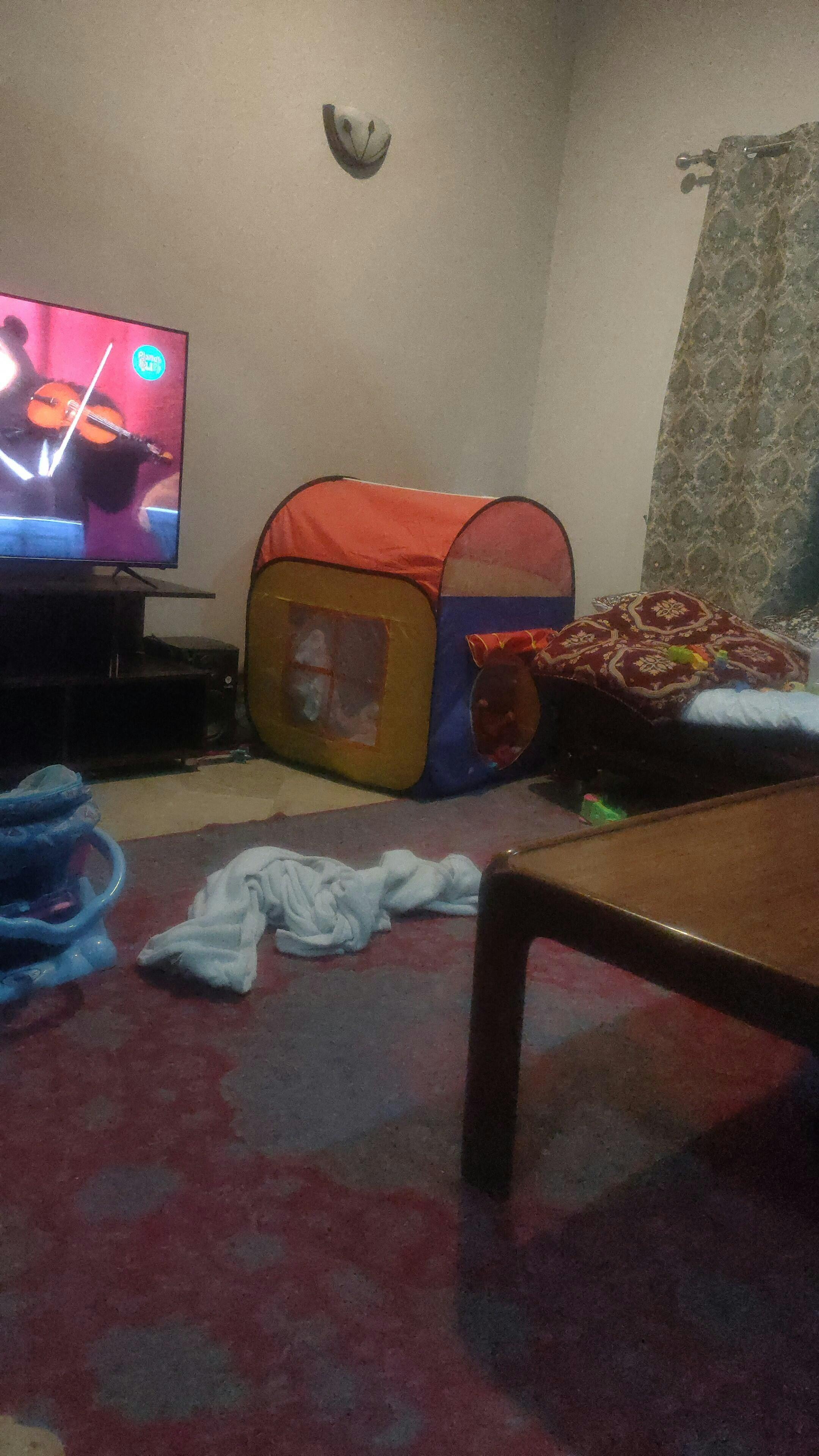 Baby Toys presenting to you the amazing Pop up House Tent For Kids. Children can get busy while playing in their little tent house and decorating it from inside. It is ideal for both indoor and outdoor plays of your little ones. Pop Up Tent House For Kids made of polyester and nylon. Beautiful and attractive product. So we can say that play time for kids and rest time for mothers.