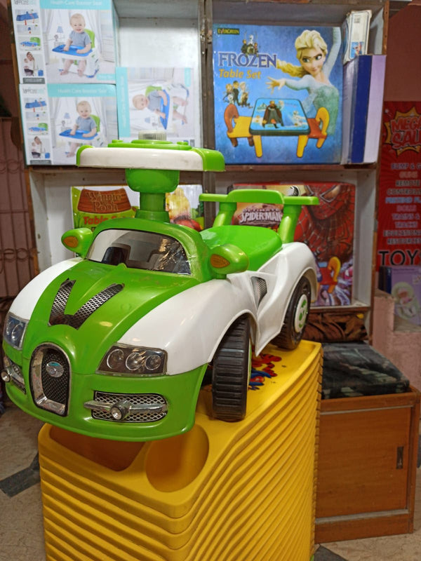 Baby Musical & Light Push Car With Handle 1-4 Years Old Baby Loud Music with Different Tones, with Colorful lights front & backside for baby attraction. Die-casting Plastic with extreme shining. 4 wheel auto staring Drive Car Logo for Baby Loving, Foot space for smooth drive Suitable for 1 year to 4 years child